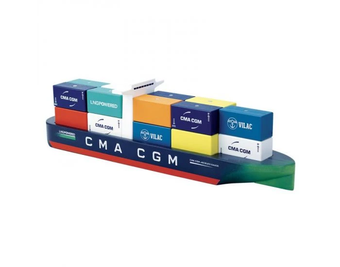 Bateau Porte-Conteneurs Jacques Saadé Vilacity, cubes en bois empilables de la marque Vilac. Référence 2356S.