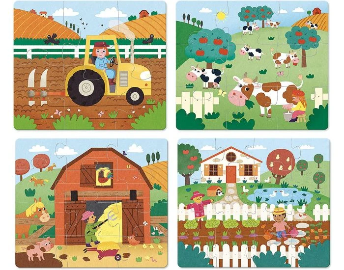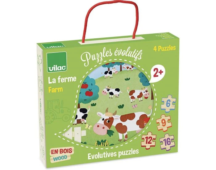 Ces puzzles de difficulté croissante ont un nombre de pièces évolutif pour accompagner l’enfant dans sa progression : 6, 9, 12 et 16 pièces.