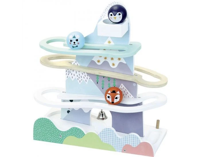 Votre enfant aodrera faire dévaler la pente au petit pingouin, à l’ours malin et au renard coquin. Lorsque les balles descendent, elles font tinter un petit grelot et votre enfant s’empressera alors de les remettre en piste !