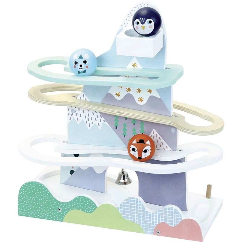 Votre enfant aodrera faire dévaler la pente au petit pingouin, à l’ours malin et au renard coquin. Lorsque les balles descendent, elles font tinter un petit grelot et votre enfant s’empressera alors de les remettre en piste !