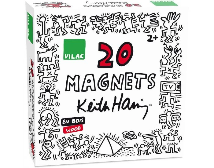 Ces 20 magnets en bois joliment illustrés feront découvrir le monde de l’artiste Keith Haring à votre enfant. Ces jolis magnets trouveront vite leur place sur le réfrigérateur ou un tableau magnétique !