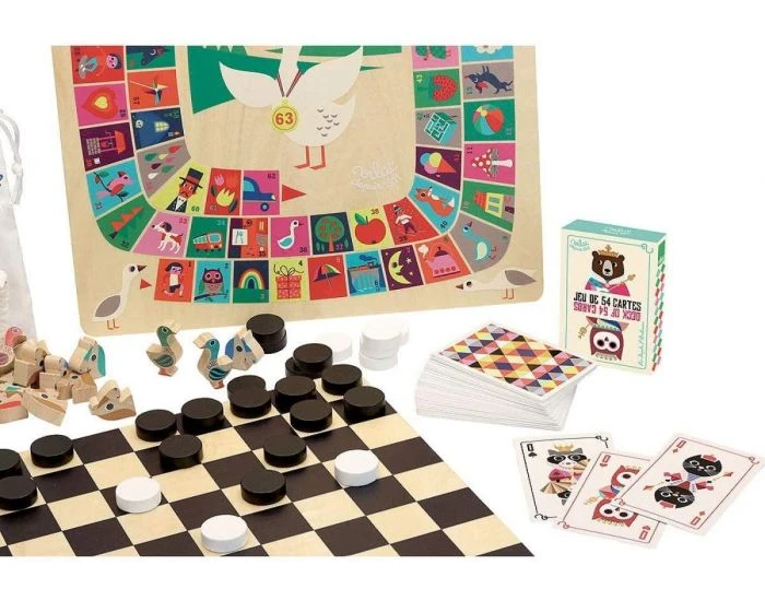 Grand coffret de jeux de société illustré par Ingela P.Arrhenius pour découvrir ou redécouvrir les grands classiques et partager en famille ou entre amis le plaisir du jeu !