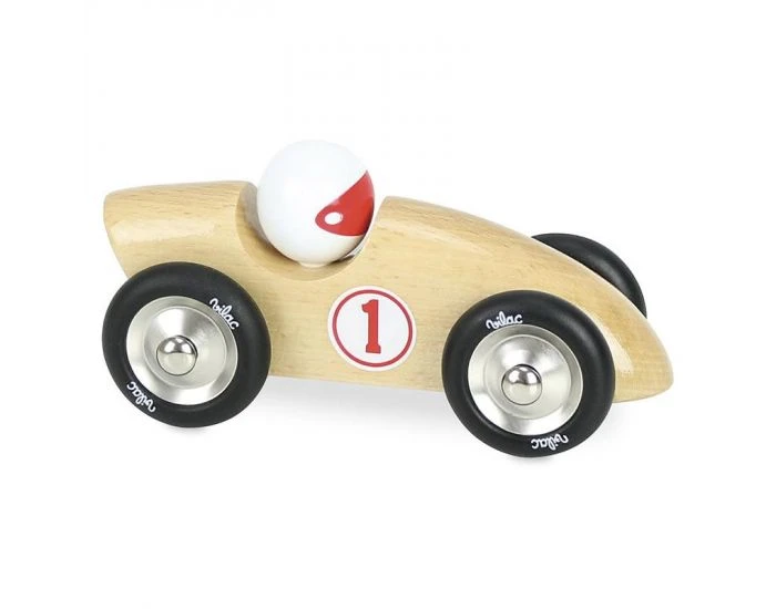 Voiture de compétition GM bois naturel, en bois massif laqué, fabriquée en France par Vilac.