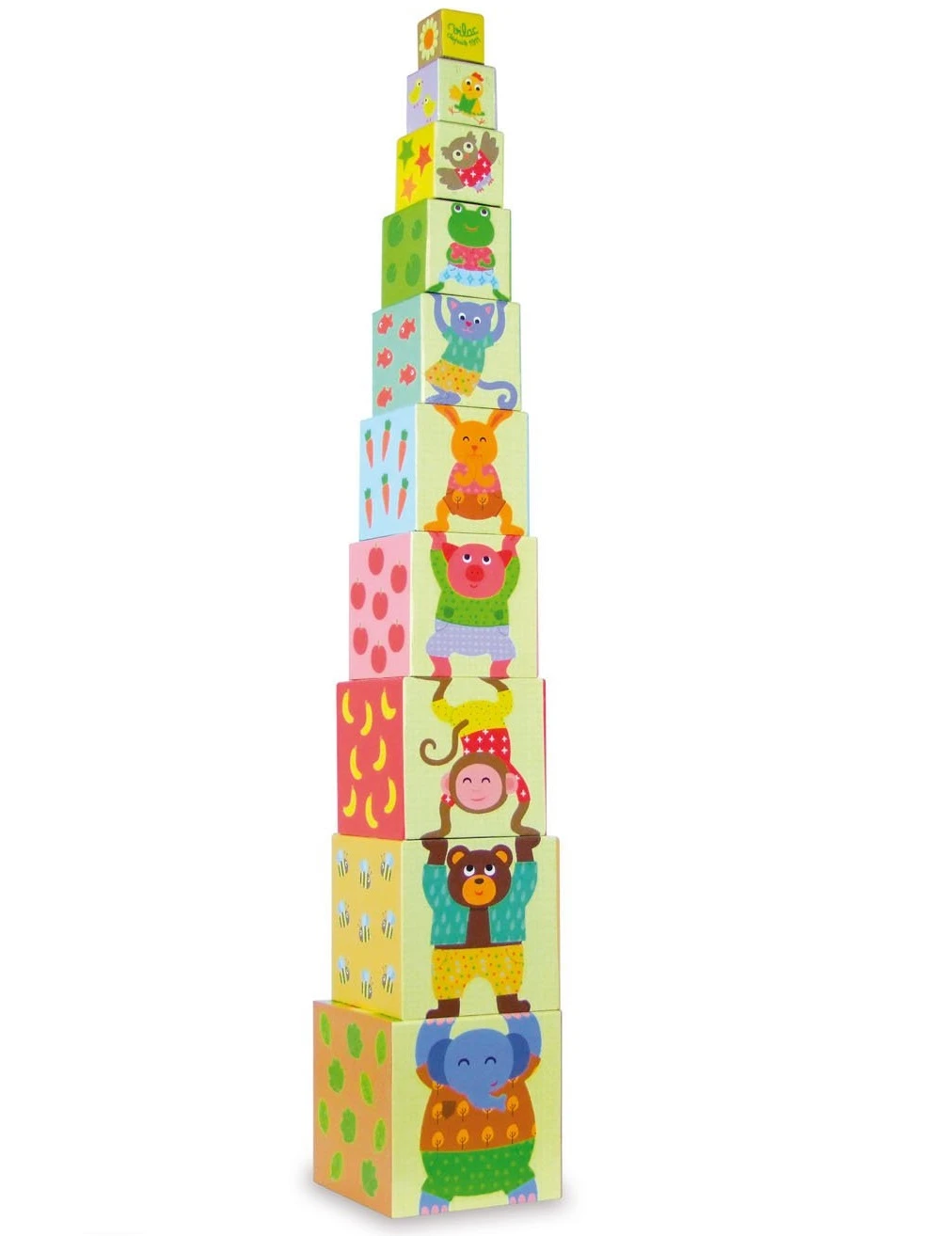 10 cubes gigognes en cartons. Des cubes en en cartons de la marque Vilac, un jouet idéal pour les petits à partir de 2 ans. Empiler les cubes du plus grand au plus petit pour former la pyramide des animaux.