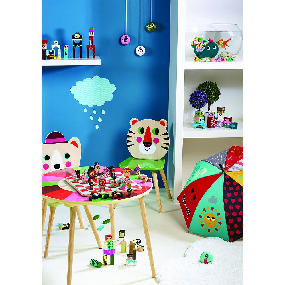 Cubes sonores de la mer, 11 cubes sonores en bois aux fomes variées (cubes, cylindres, rectangles) et illustrés sur le thème de la mer par Ingela P. Arrhenius.