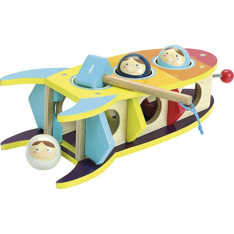 Martelez pour embarquer et sécuriser chacun des 3 astronautes dans le cockpit de la fusée prête à décoller ! Un jouet en bois a marteler qui favorise la motricité des petits. Le jouet à marteler « Dans les étoiles » est destiné aux enfants à partir de 18 mois.
