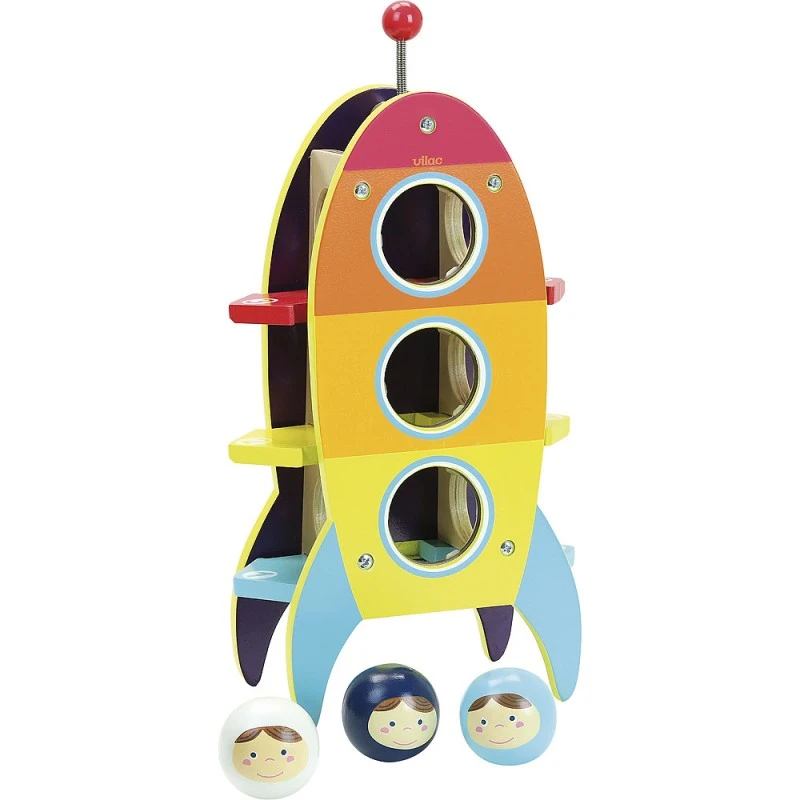 Dans les étoiles – 3, 2, 1 décollage! Un jouet d’éveil en bois massif de la marque Vilac, référence 2445.