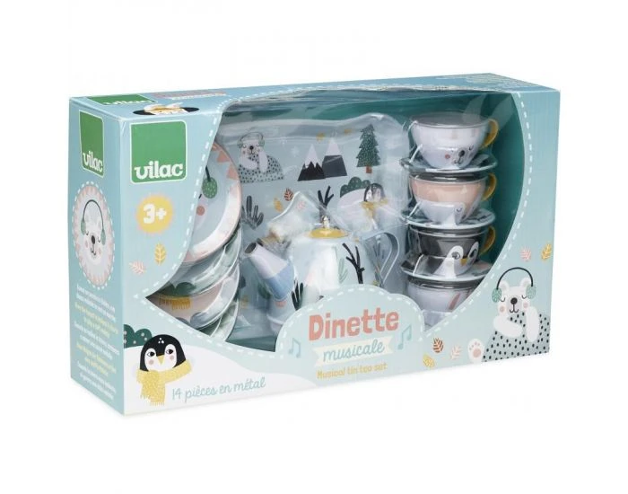 Dinette musicale en métal sur le thème de la banquise de la marque Vilac, réf 8504.