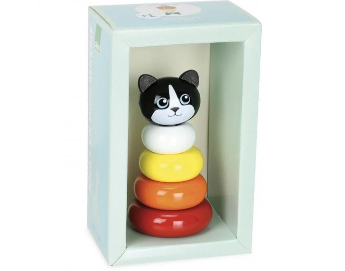 Cet empilable à l’éfigie de Minou le chat de Vilac est composé de 5 pièces en bois.