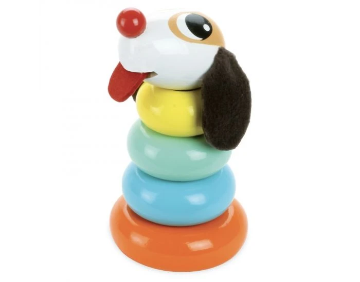 Cet empilable à l’éfigie de Toutou le chien de Vilac est composé de 5 pièces en bois.