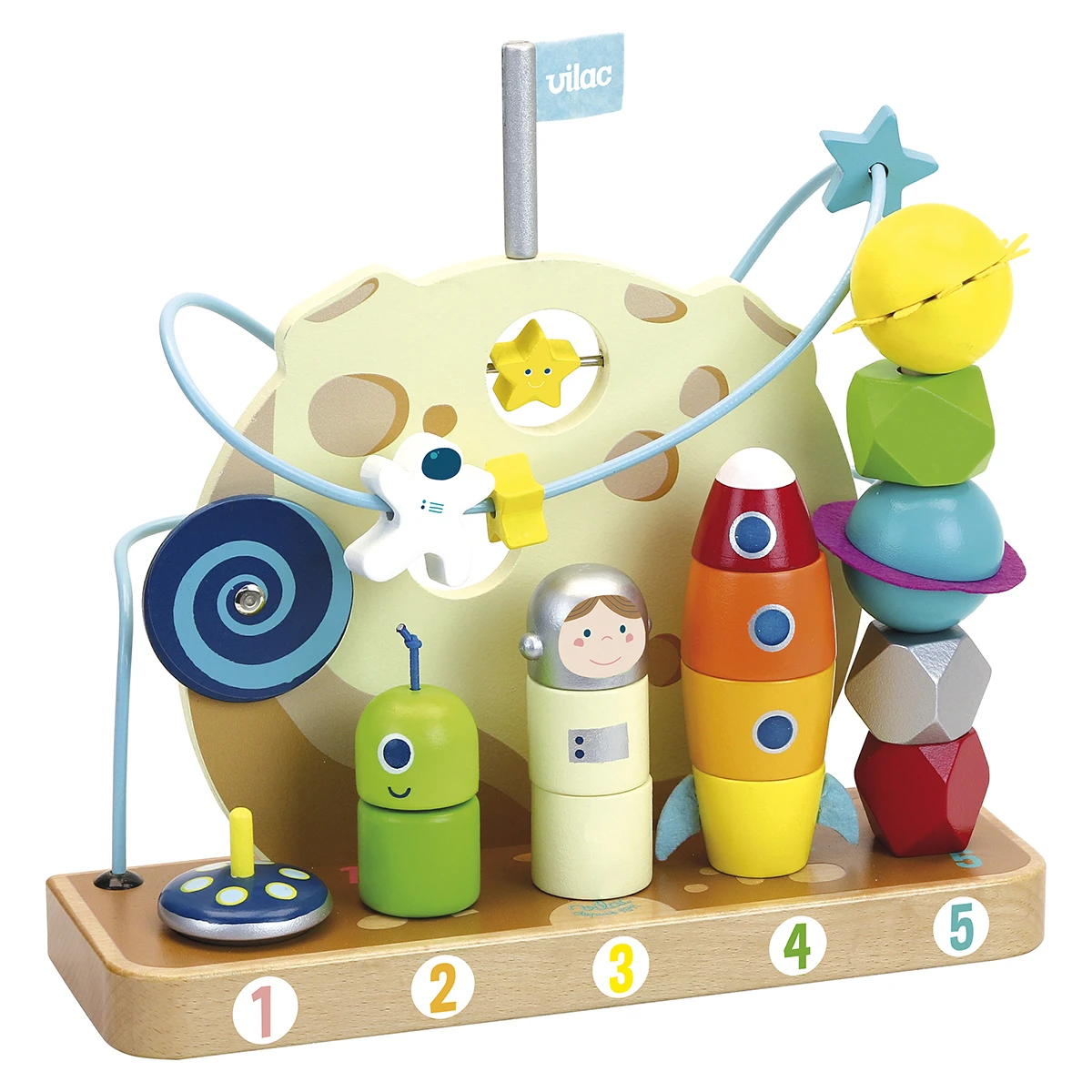 J’apprends à compter Dans les étoiles, un jouet d’éveil en bois de la marque Vilac. Référence 2448.