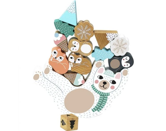 Lance le dé et essaye d’empiler les flocons, les renards des neiges, les pingouins ou les montagnes et les savoureuses glaces sur le ventre d’Eddy? attention à ne pas tout faire tomber !