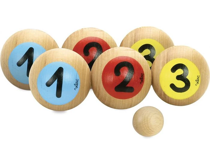 Jeu de pétanque 1, 2, 3, un jeu de pétanque en bois de la marque Vilac