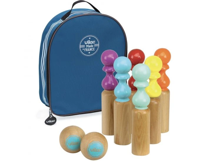 Un jeu de quilles en bois fabriqué en France par la marque Vilac.