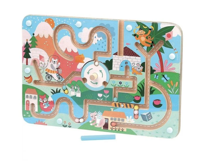 Munis du stylet magique, les enfants feront voyager les billes dans le labyrinthe pour aller à la rencontre des animaux.