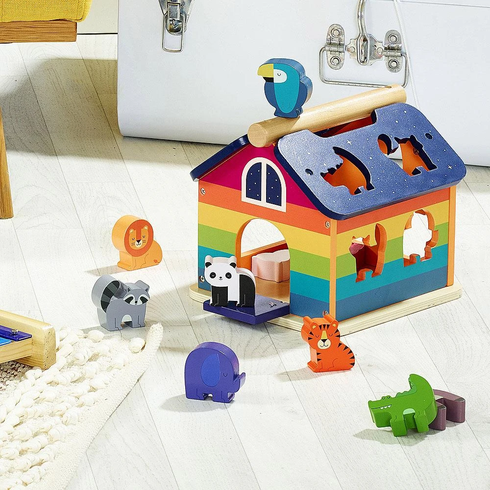 Maison des formes Arc-en-ciel, une boîte à formes en bois de la marque Vilac. Référence 7404.