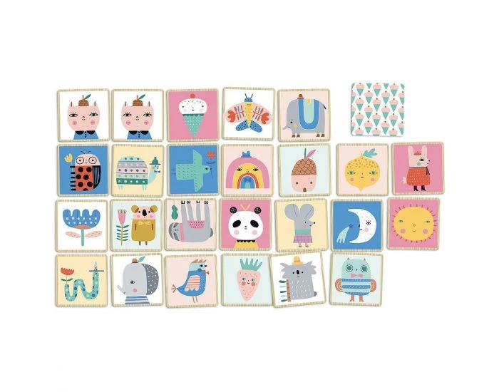 Craquez pour ce joli jeu de mémo de 48 pièces en bois, illustré par Suzy Ultman dans un univers kawai-chic doux et pétillant. Livré dans sa boite en bois décorée.