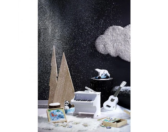 Sans avoir la prétention d’être un instrument de musique aux notes parfaitement ajustées, ce joli piano-jouet blanc est livré avec dix partitions adaptées pour les enfants afin de stimuler leur éveil musical.