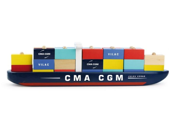 Une belle réplique en bois d’un porte-container. Si vous trouvez que les cubes en bois manquent d’originalité, ce jouet en bois VILAC est fait pour vous ! Préparez la cargaison de ce porte-container en empilant les cubes de bois aux couleurs variées.