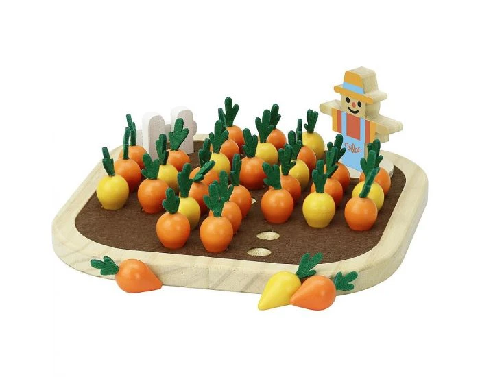 Un solitaire original en bois avec des pions en forme de petites carottes pour le plus grand plaisir des petits comme des grands.