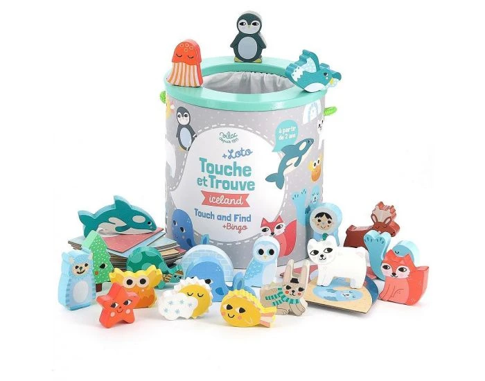Le Touche et Trouve est un jeu de reconnaissance tactile qui consiste à mettre la main dans le sac pour trouver les pièces voulues. Cette version Iceland, aux tonalités toutes douces, a été imaginée par Michelle Carlslund.