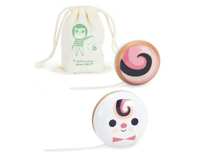 Vilac a confié le design de ce yoyo en bois à l’illustratrice Ingela P.Arrhenius. Elle a imaginé un décor délicat et attendrissant, aux accents rétro. Sur la face blanche, un adorable peti minois. L’autre face présente un décor graphique en spirale.